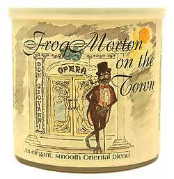 100g Tin A rather mellow smoke, Frog Morton on the Town draws deep rich flavor from its base of golden and red Virginias and a pleasant smoky, earthy undertone from the Latakia. A light flavoring from Basma gives the blend a unique, almost vanilla like flavor.